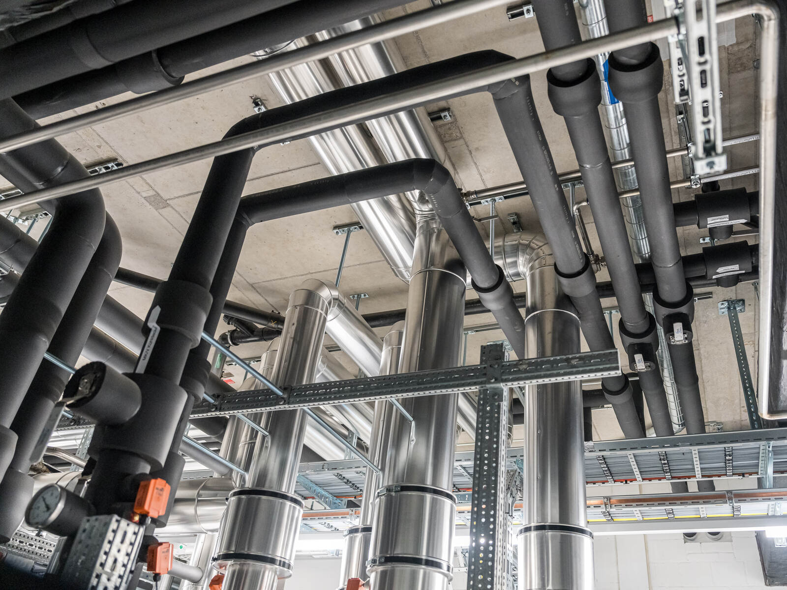 Im Untergeschoss im DSM Werk Sisseln sind die Technikräume für Heizung, Kälte, Sanitär und Elektro untergebracht.